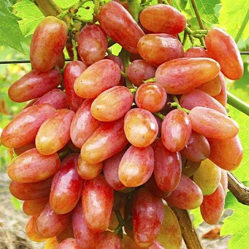 Грозди винограда удивляют своим разнообразием форм: от классических конических до свободных, практически бесформенных, но неизменно изобилующих ягодами. Средняя масса грозди составляет около 804 граммов, а отдельные экземпляры могут впечатлить весом до 1,8 килограмм. Ягоды с тупым кончиком обладают удлиненно-овальной формой и привлекают как своим внушительным размером (в среднем 13,7 грамма), так и насыщенным бело-розовым, а иногда и ярко-розовым оттенком, зависящим от количества солнечного света.